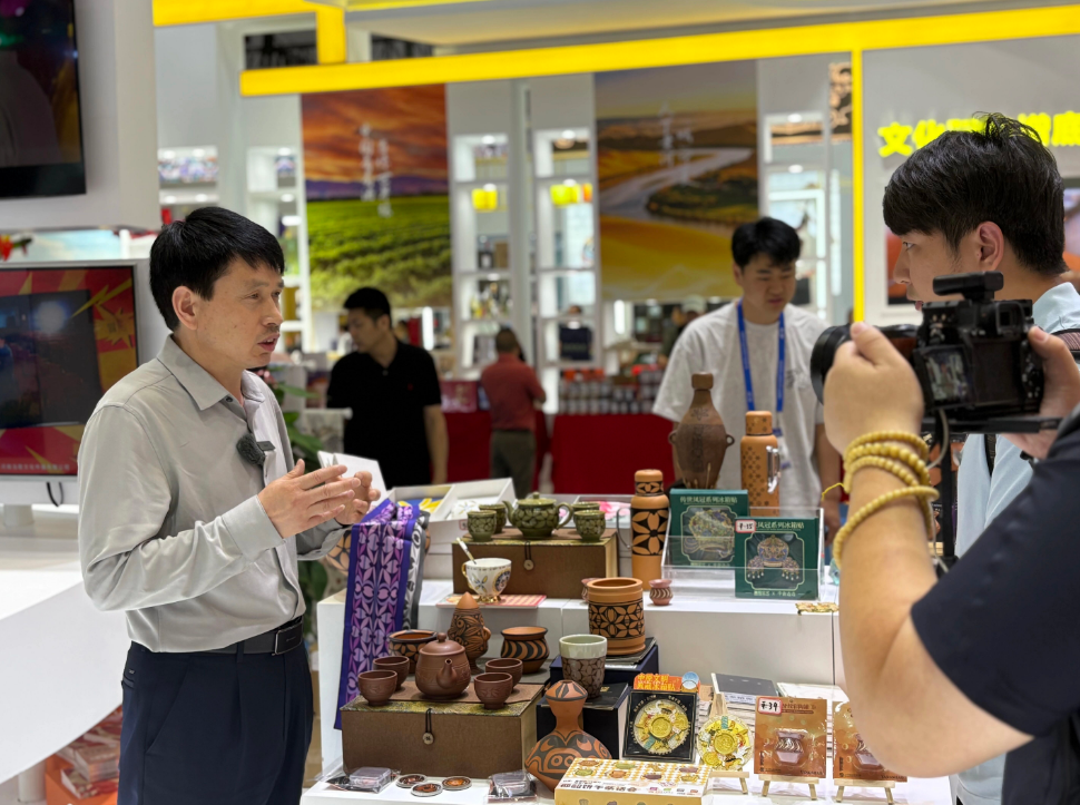 展會(huì)期間,董事長(zhǎng)王新軍成為了仰韶文化有力的當(dāng)代“代言人”。他精神飽滿,從容應(yīng)對(duì)來(lái)訪媒體的鏡頭與話筒,向全國(guó)乃至世界觀眾講述仰韶彩陶的獨(dú)特魅力與深厚底蘊(yùn)。從企業(yè)如何秉持匠心守護(hù)傳統(tǒng)工藝,到如何通過(guò)創(chuàng)新設(shè)計(jì)讓古老文物“活”在當(dāng)下。他的講述,讓仰韶文化從塵封的歷史中躍然而出,煥發(fā)出歷久彌新的時(shí)代光彩。